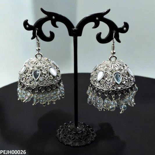 PEJH00026 FRN Tear Round Stone Silver Jhumki - PEJH