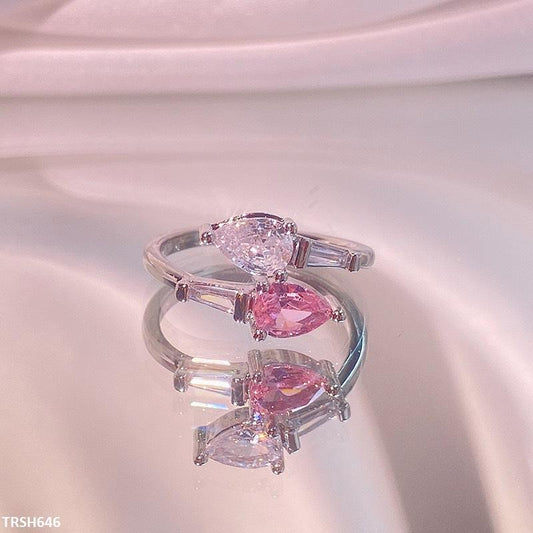 TRSH639 JJS Double Heart Stone Ring Adjustable