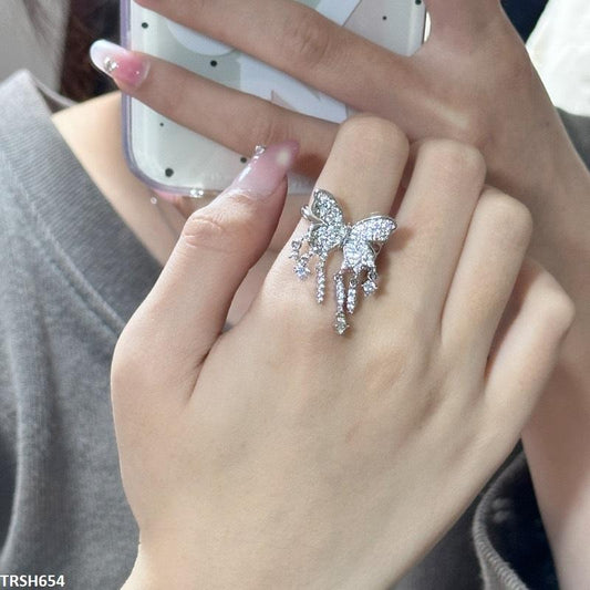 TRSH654 JJS Butterfly Chain Drop Ring Adjustable