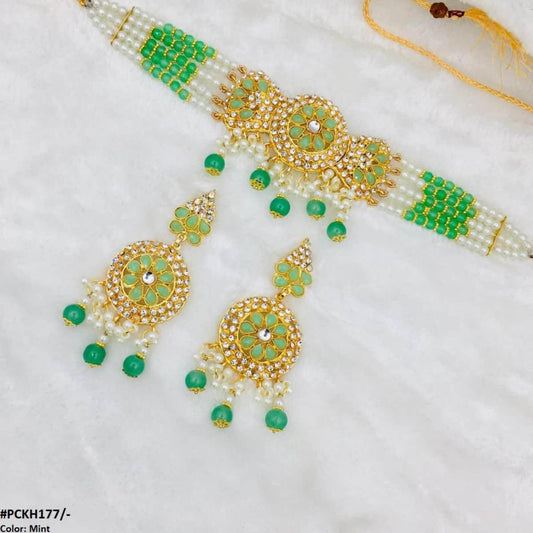 PCKH177 SDQ Pear Flower Bow Chokar Set