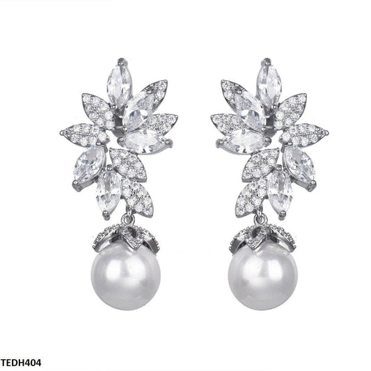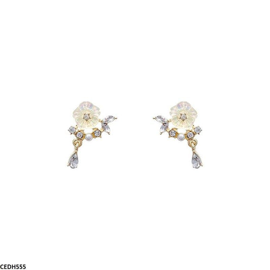 CEDH581 ZCD Flower/Pearl Drop Earrings
