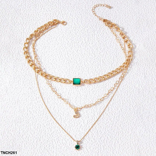 TNCH188 YYE Balls/Moons/Stars Curb Layered Necklace