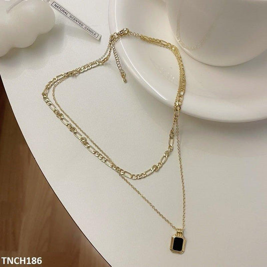 TNCH186 LSH Squared Layered Curb Chain Necklace