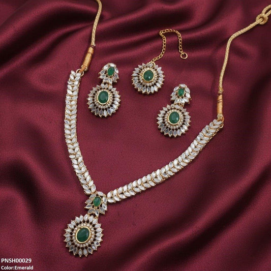 PNSH00037 MZM Oval Leaf Necklace Set - PNSH