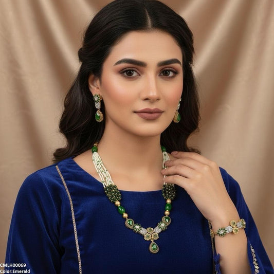 CMLH00056 MZM Flower Pearl Drop Mala Set - CMLH