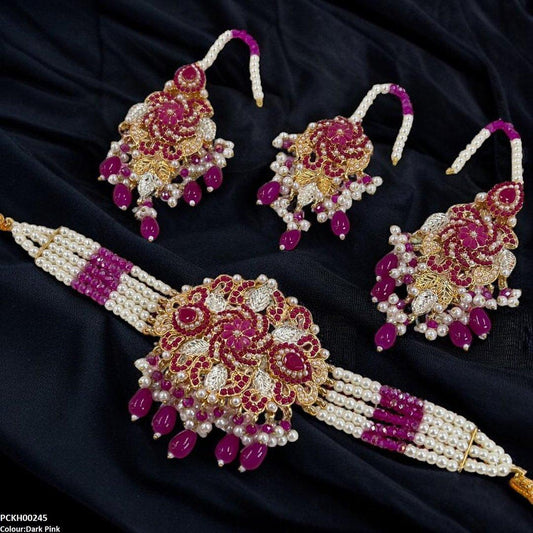 PCKH177 SDQ Pear Flower Bow Chokar Set