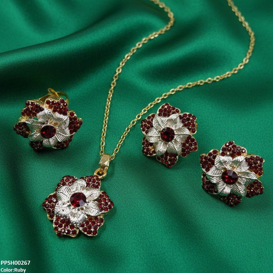 PPSH00268 SDQ Round Stone Flower Pendant Set - PPSH