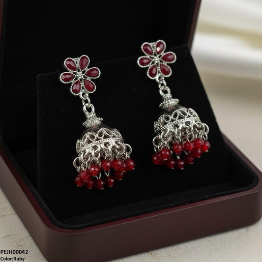 PEJH00042 SDQ Flower Pearl Drop Jhumki - PEJH