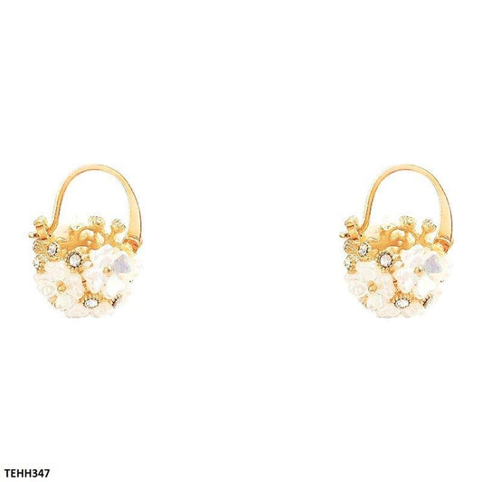 TEHH355 XUP Flower Round Stone Hoops Pair - TEHH