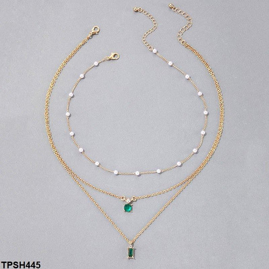 TPSH445 YYE Baguette/Round Pendent With Link Chains