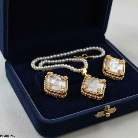 PCKH00265 SDQ Rectangle Pearl Drop Choker Set - PCKH