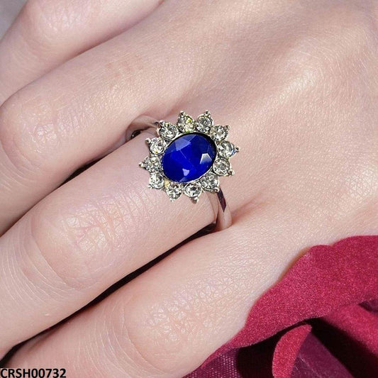 CRGH00715 KRL Round Stone Flower Ring Adjustable - CRGH