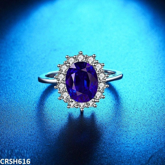TRSH571 GWH Round crystal Blue Stone Ring Adjustable