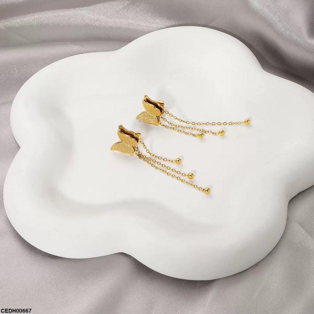 CEDH00667 DGF Double Butterfly Chain Drop Earrings - CEDH