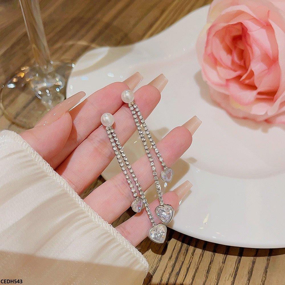 CEDH543 DDJ Round Chain Heart Drop Earrings