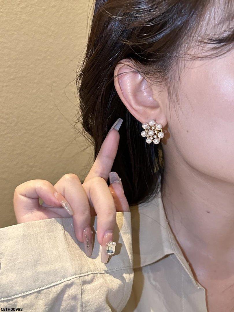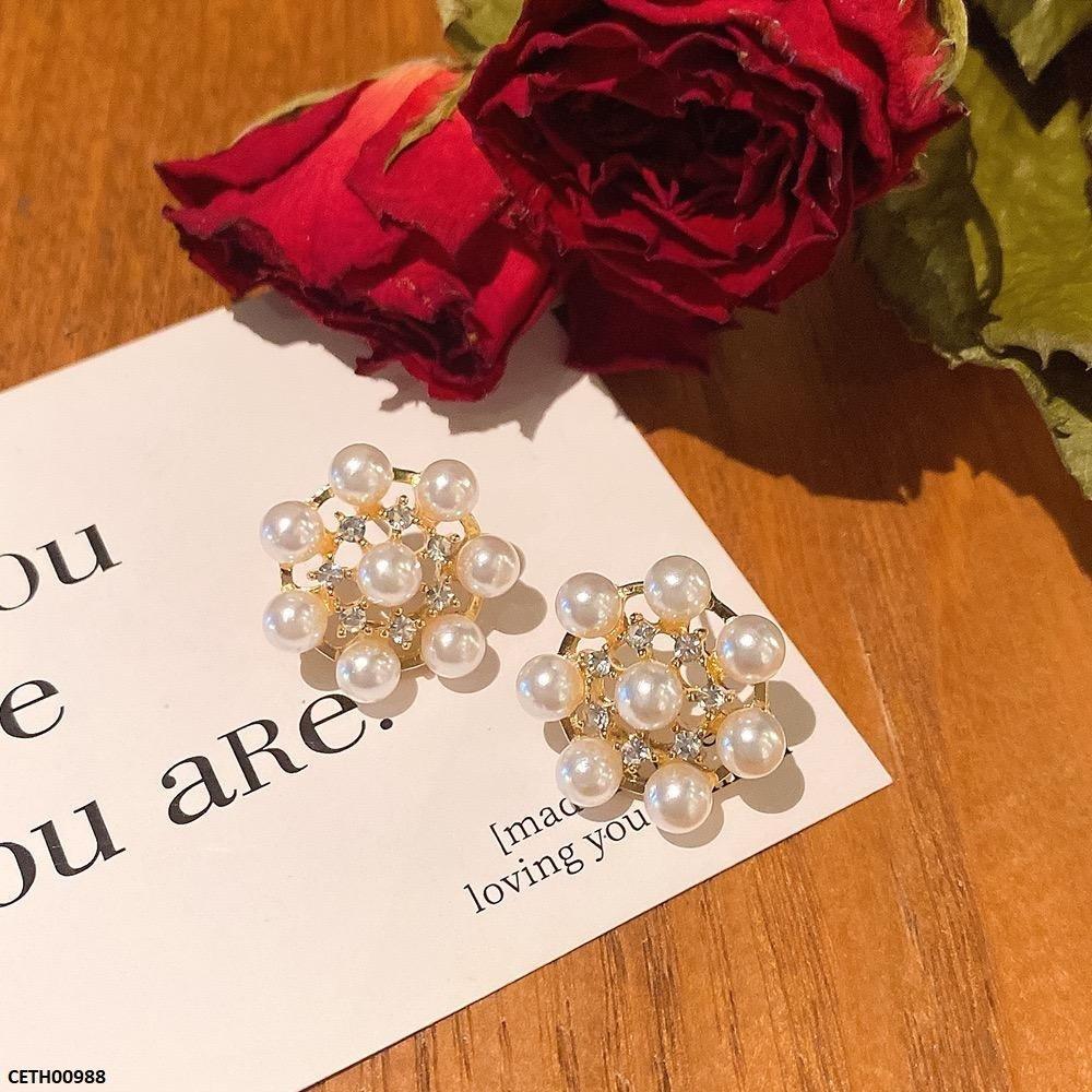 CETH00988 YHC Round Pearl Flower Tops Pair - CETH