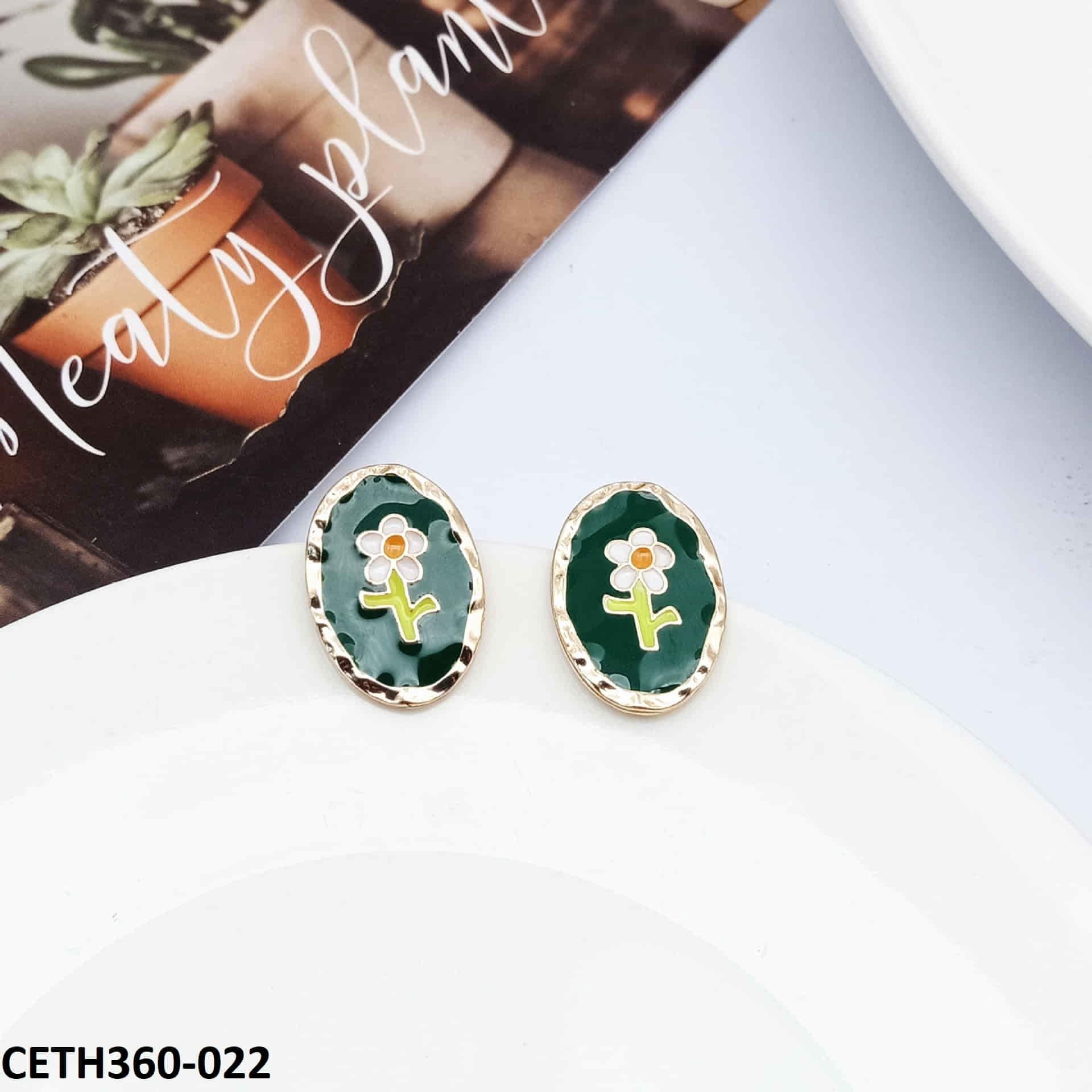 CETH360 AMY Oval Painted Flower Stud Tops Pair