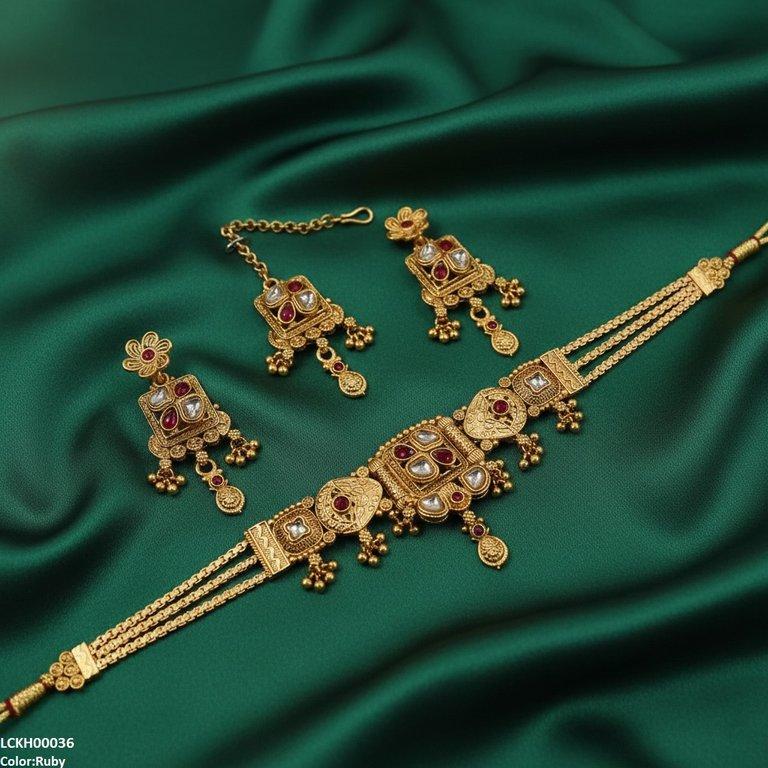 Package Included: 1x PCS of Choker,1x Pair Of Earning,1x Of Bindi