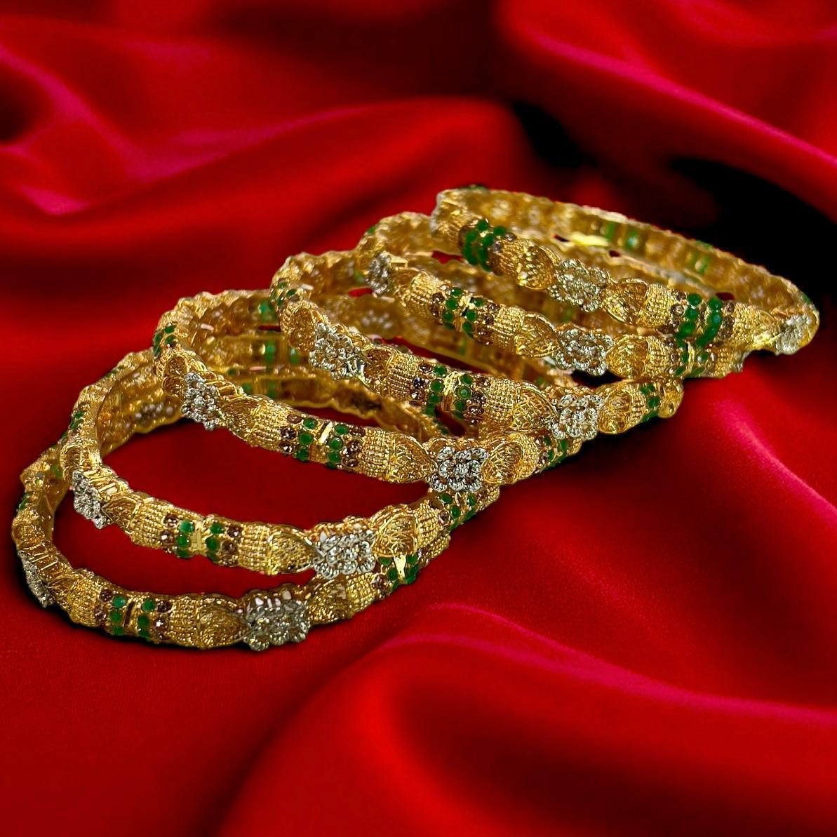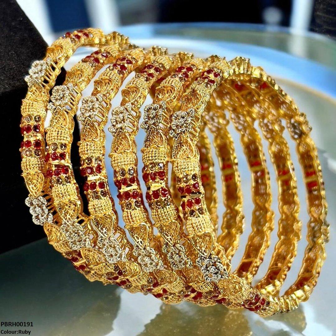 PBRH00191 SDQ Flower Bangles 6 Pcs Set - PBRH