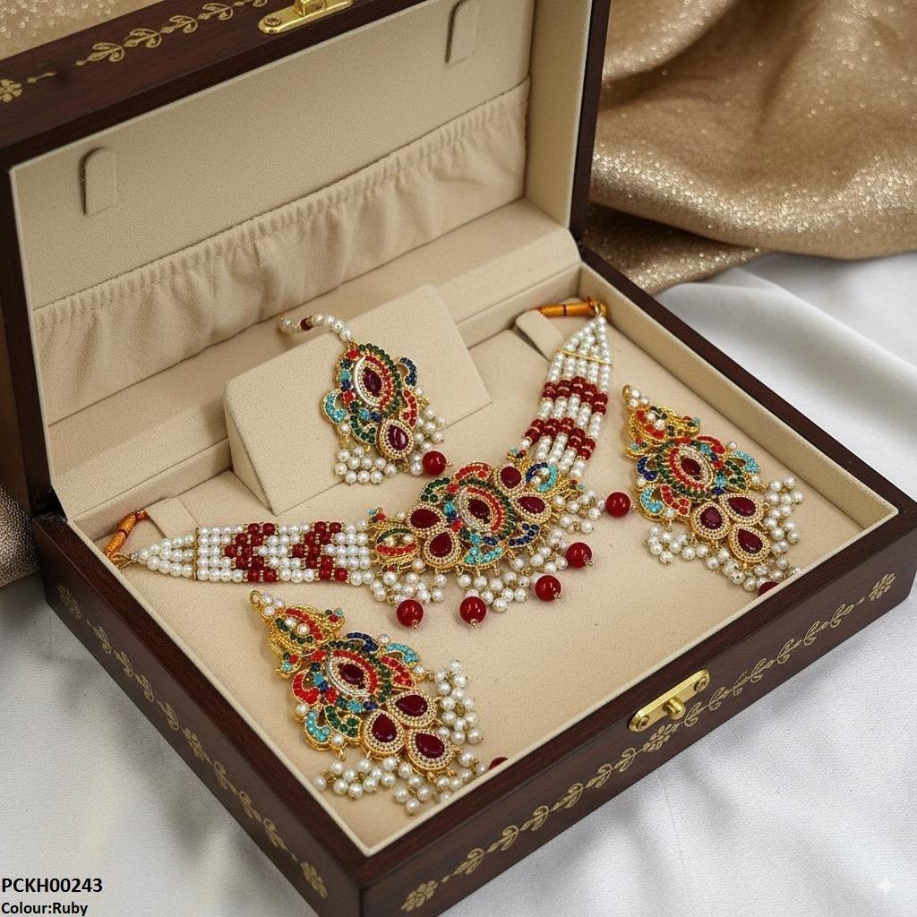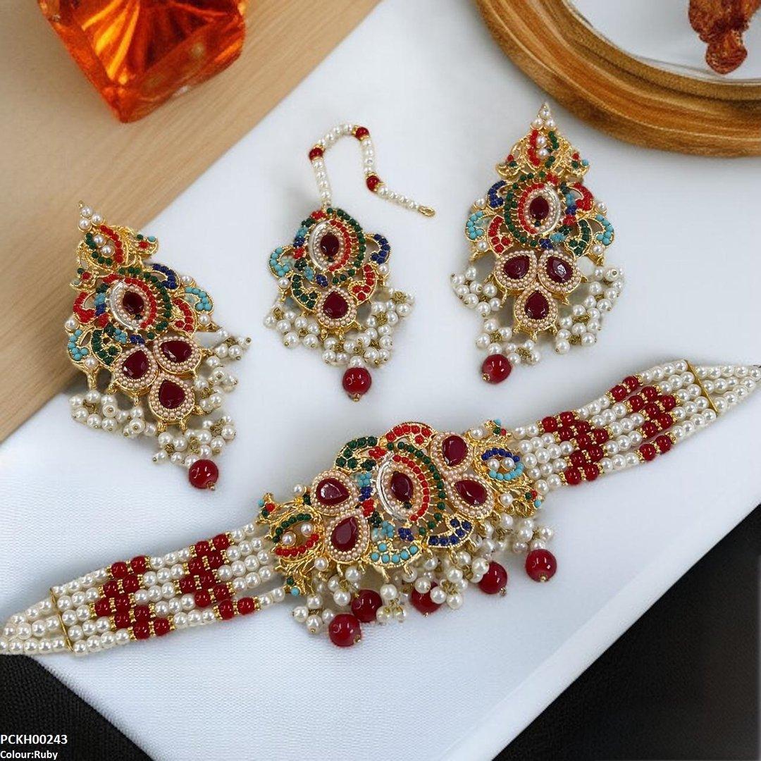 Package Includes: 1x Choker set, 1x pair of Earrings, 1x of Bindi