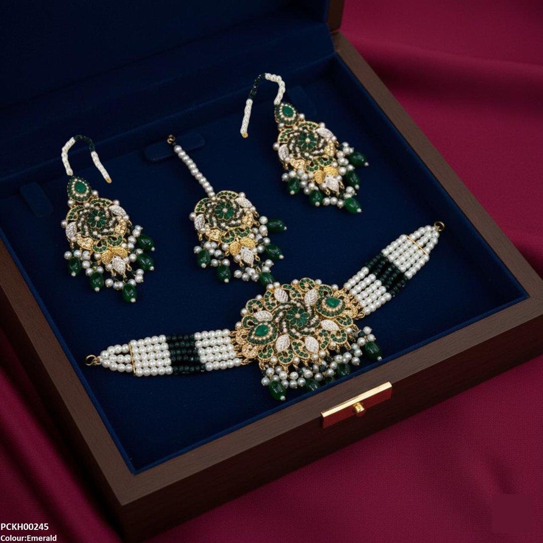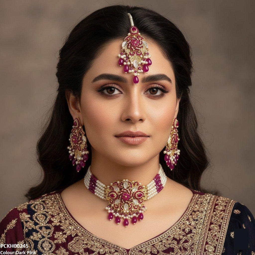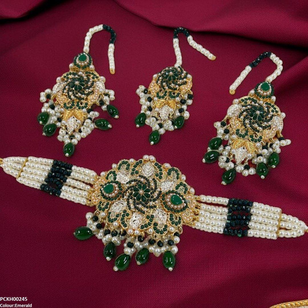 Package Includes: 1x Choker set, 1x pair of Earrings, 1x of Bindi