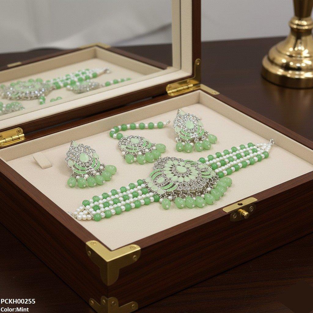 Package Include: 1x Choker set, 1x pair of Earrings , 1x Pair Of Bindi