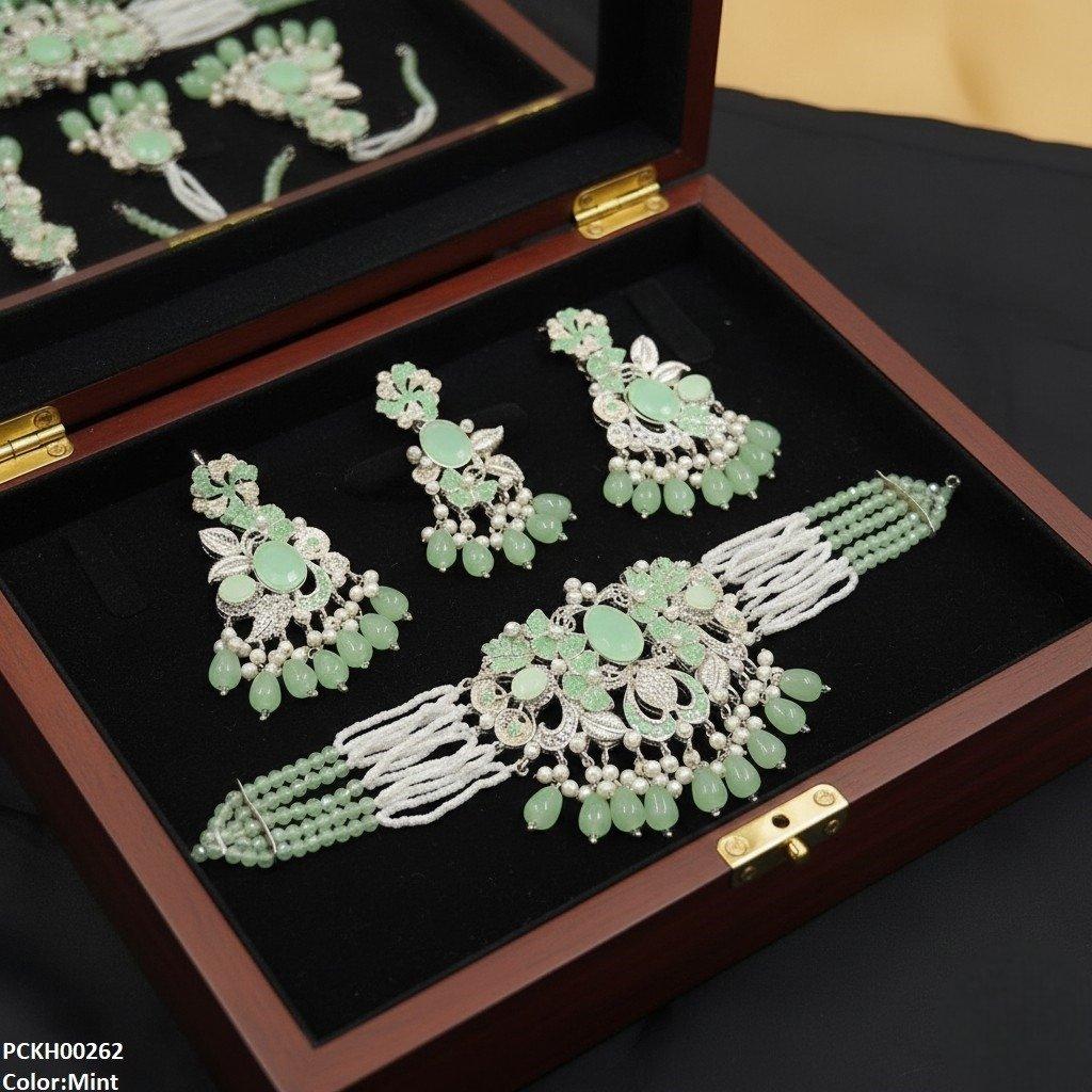 Package Include: 1x Choker set, 1x pair of Earrings , 1x Pair Of Bindi