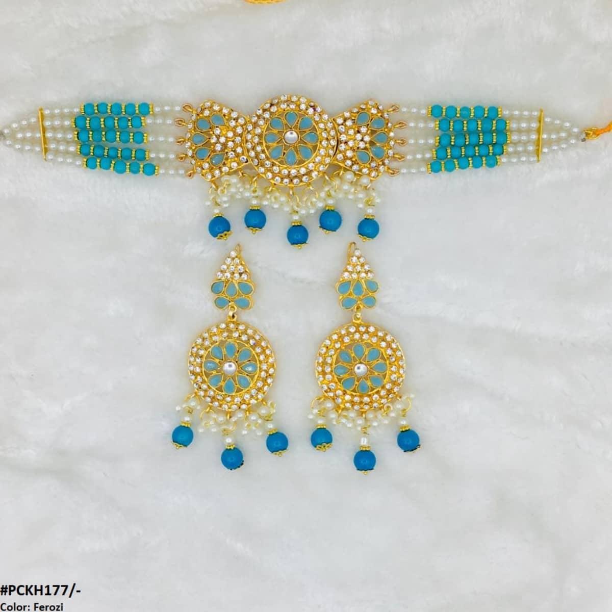 PCKH177 SDQ Pear Flower Bow Chokar Set