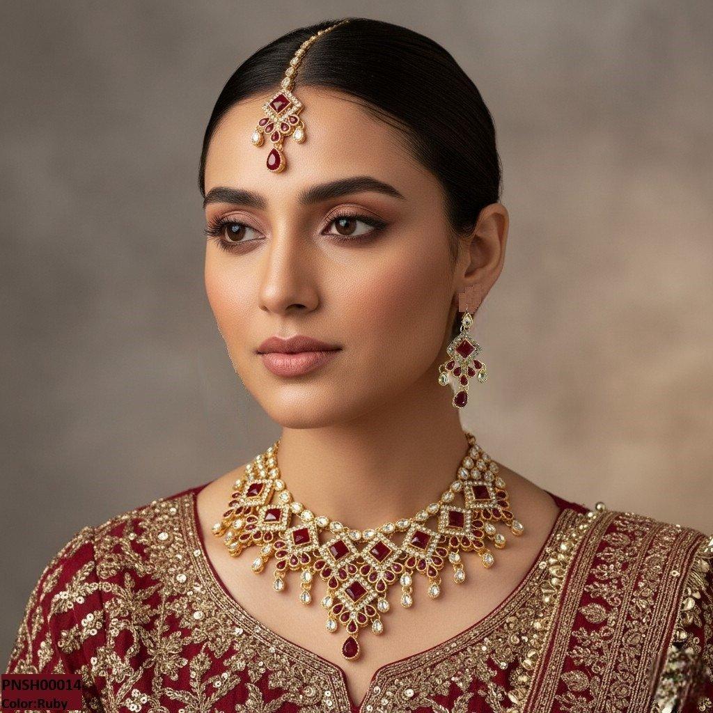 Package Included: 1x PCS of Necklace, 1x PCS of Bindi & 1x Pair Of Earrings