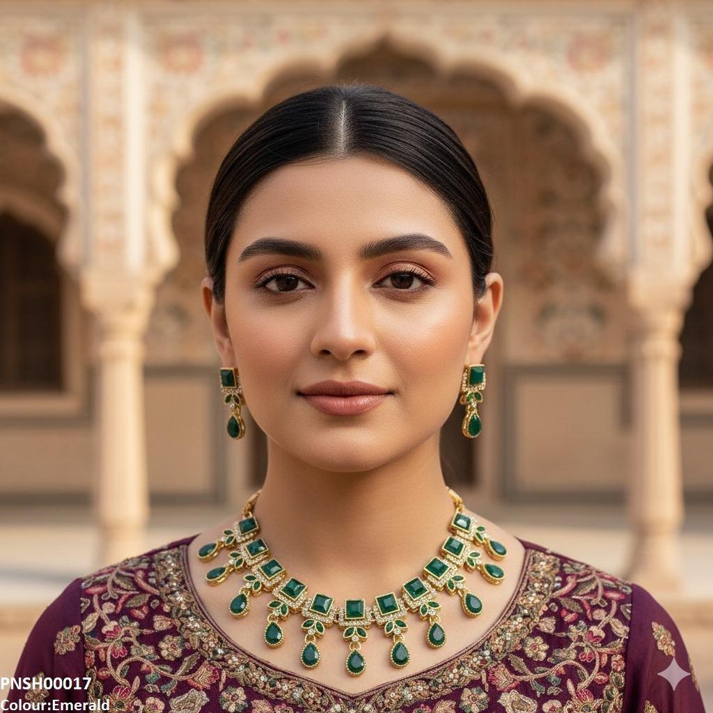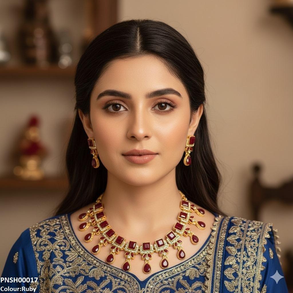 PNSH00017 FRN Square Tear Drop Necklace Set - PNSH