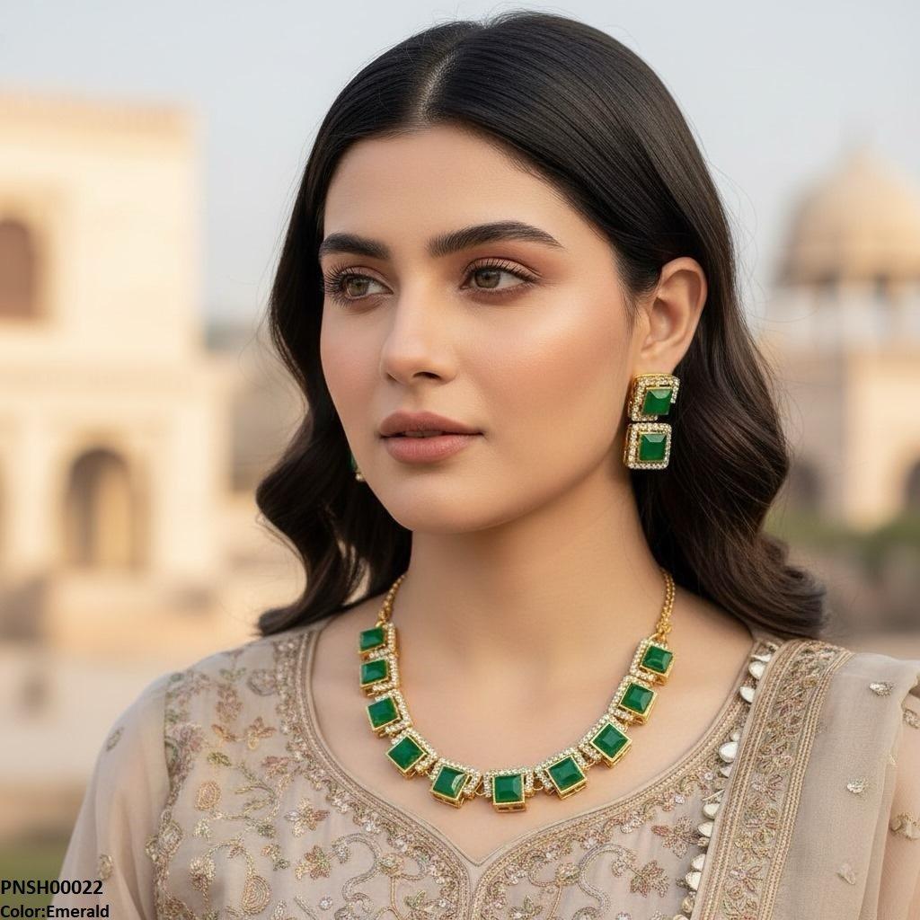 PNSH00022 FRN Square Necklace Set - PNSH