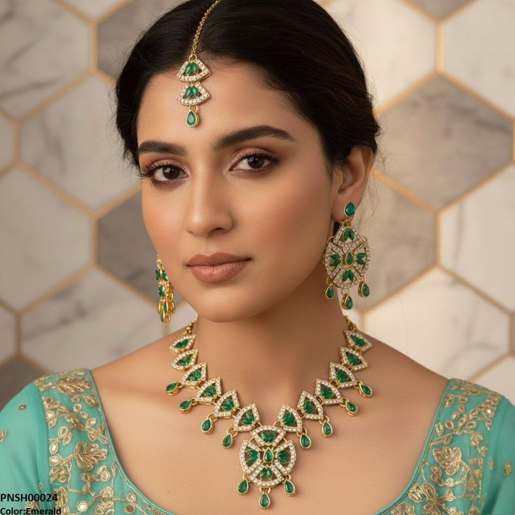 Package Included: 1x PCS of Necklace, 1x PCS Of Bindi 1x Pair Of Earrings