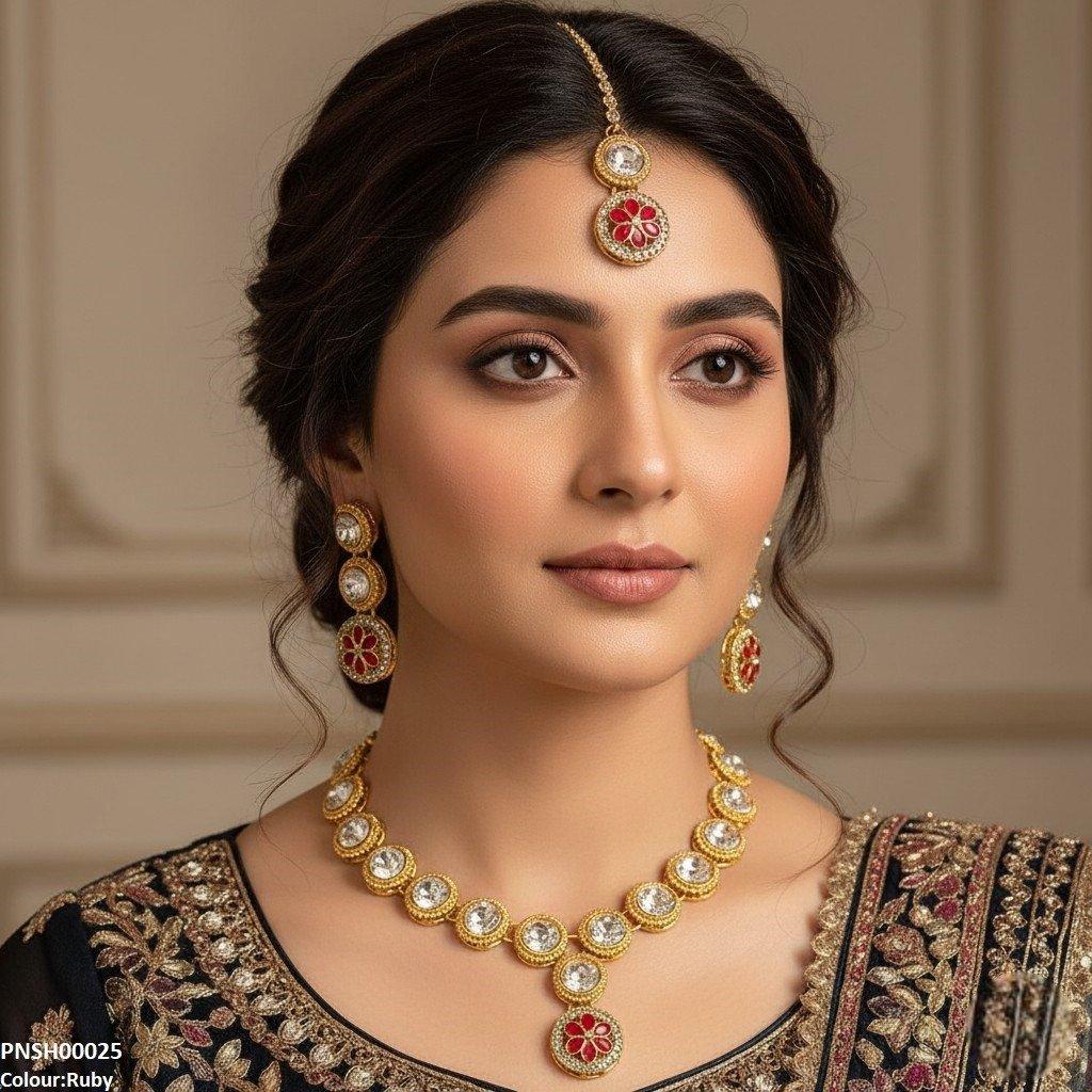 Package Included: 1x PCS of Necklace, 1xPCS Of Bindi, 1x Pair Of Earrings