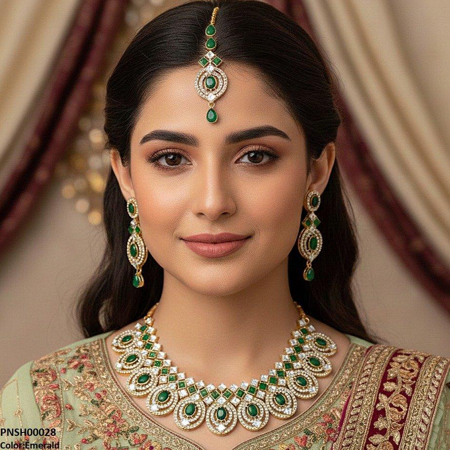 Package Included: 1x PCS of Necklace, 1x Pair of Earrings,1x of Bindi
