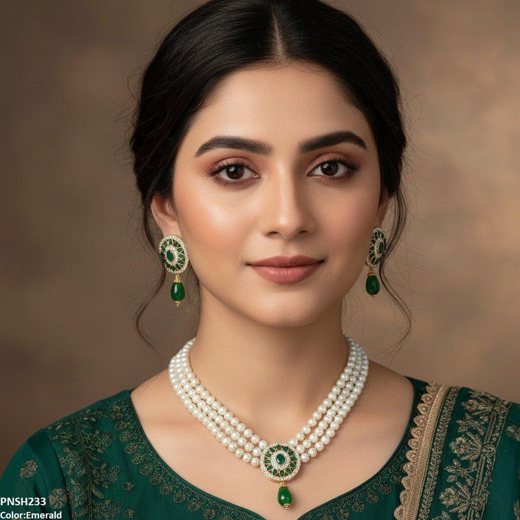 PNSH233 SDQ Flower Pearl Drop Necklace Set