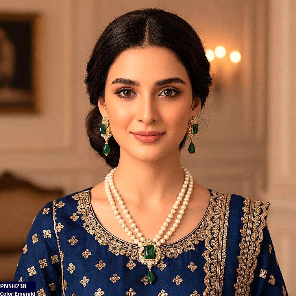 PNSH238 SDQ Rectangle Pearl Drop Necklace Set