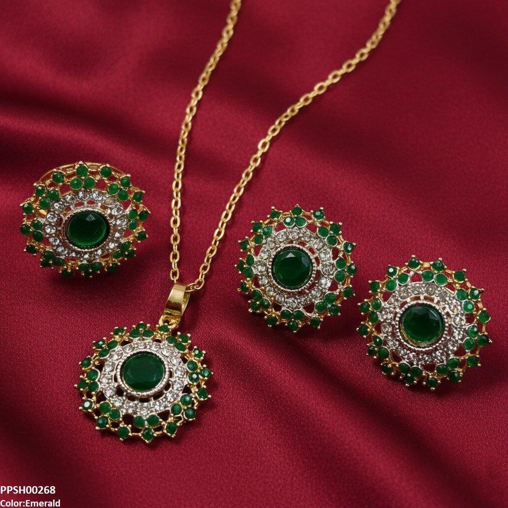 PPSH00268 SDQ Round Stone Flower Pendant Set - PPSH